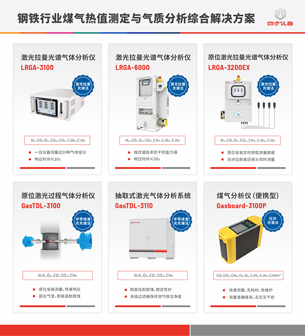 四方光电(武汉)仪器有限公司(以下简称“四方仪器”)凭借其先进的核心气体传感器技术和数十年工业过程在线监测设备开发经验,四方仪器推出了一套专为钢铁行业设计的光谱法热值分析解决方案。该方案采用行业领先的光学成分法分析原理,结合激光拉曼光谱、红外光谱和半导体激光光谱等多种光学技术,实现了对煤气成分和热值的同步监测,助力钢铁企业精确控制工艺流程,提升生产效率,确保生产过程的安全性,并为钢铁行业的生产决策提供坚实的数据支持和可靠依据。