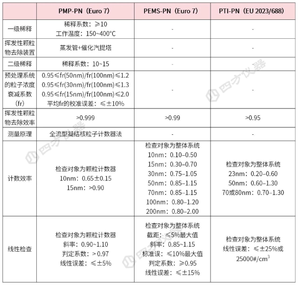 表2 PMP-PN、PEMS-PN和PTI-PN分析仪的主要技术要求