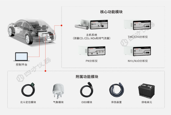 四方仪器的机动车尾气PMP-PN、PEMS-PN和PTI-PN分析仪与相关设备配套形成了分别应对新生产机动车排放标准台架典型工况和实际道路行驶及在用机动车排放标准怠速工况三种试验方法的三套专用系统解决方案: