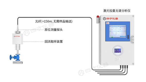 为了更好满足工业过程控制多组分气体检测的实际应用需求,四方仪器新开发了LRGA-3200EX原位激光拉曼光谱气体分析仪(图3)。LRGA-3200EX主要由取样装置、原位测量探头、光纤、激光拉曼光谱分析仪和系统软件组成,具有测量气体物种多、功能全面、安装方便、快速、准确等特点。