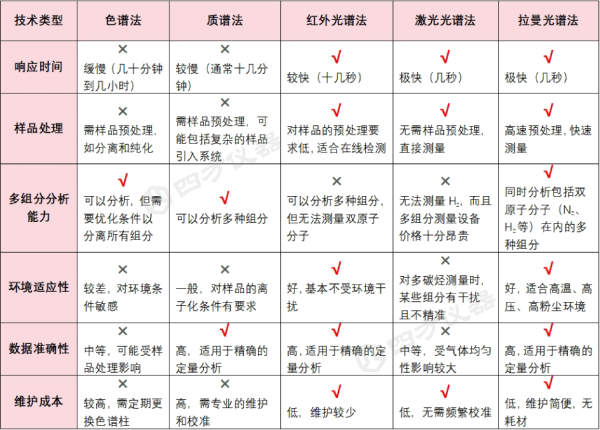 常见气体成分分析技术对比