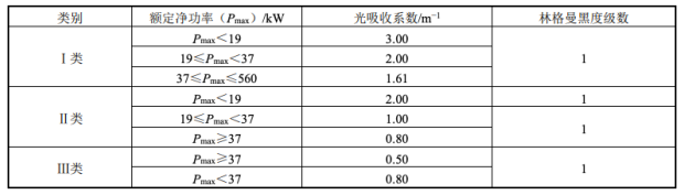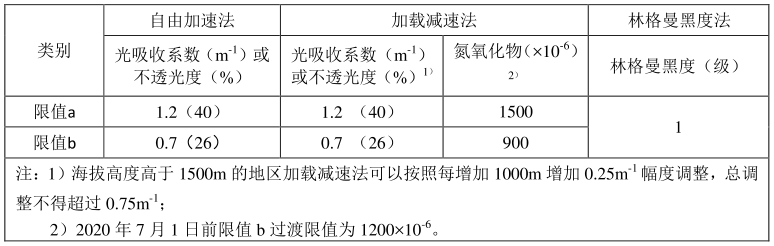 表二、GB 36886-2018排气烟度限值要求