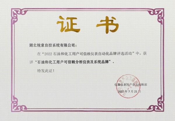 7月20日-22日,由中国自动化产业链创新联合体主办的“第十三届中国石油化工重大工程仪表控制技术高峰论坛”(简称CPIF2022)在广东省湛江市隆重召开。为了更好地总结石油和化工仪表自动化产品应用的情况,通过用户的视角反映仪表自动化产品技术的发展趋势以及产业发展格局,组委会特开展了“2022石油和化工用户可信赖仪表自动化品牌”评选活动。四方仪器(原“湖北锐意自控系统有限公司”)在气体监测分析领域,经众多用户及专家评委多轮评选后脱颖而出,并被授予“石油和化工用户可信赖分析仪表及系统品牌”证书。