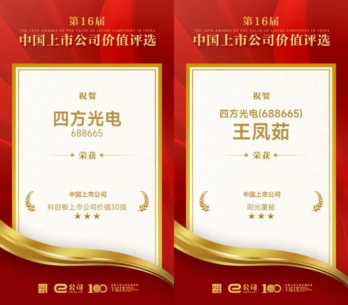 9月22日,由证券时报主办的“第十六届中国上市公司价值论坛”以元宇宙形式成功举办,第十六届中国上市公司价值评选获奖名单于同日揭晓。四方光电(688665.SH)荣获“中国上市公司科创板上市公司价值30强”;公司现任副总经理、财务总监王凤茹女士荣获“中国上市公司阳光董秘”称号。