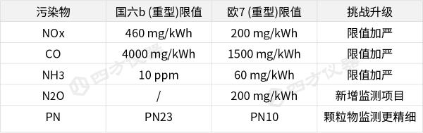 随着“国七”排放标准临近,其严苛的限值(如下表所示)对重型车发动机测试提出了更高要求。然而,核心的排放测试设备长期依赖进口,导致车企面临成本高昂、服务响应慢、技术自主可控性差等多重挑战。打破这一“卡脖子”环节,已成为行业绿色转型的迫切需求。