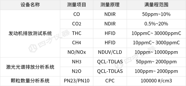 表2 Gasboard-9800系列直采排放测试系统的排放分析设备