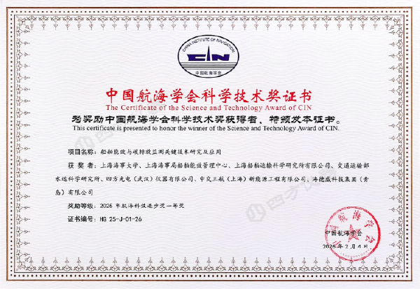 2025 年度中国航海学会科学技术进步奖评选结果公布,四方仪器携手上海海事大学、上海海事局、交通运输部等多家单位联合研发的船舶能效与碳排放监测关键技术研究及应用成果,荣获航海科技进步奖一等奖!