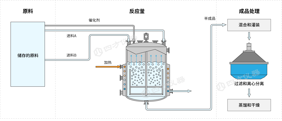 精细化工是高附加值化学品的核心生产领域,涵盖医药中间体、电子级溶剂、特种添加剂等高附加值产品。其主流设备多采用间歇式反应釜与连续式反应釜两类,间歇式反应釜因灵活适配多品种生产仍占主导,但连续式反应釜在硝化、加氢等危险工艺中正在加速普及,成为政策驱动的升级方向。两类工艺均涉及易燃易爆及有毒有害气体,生产过程中需严格控制副产物生成与杂质含量(产品纯度有时需要控制在ppm级),同时小批量、多品种的生产模式导致工况波动频繁,对气体监测的实时性、精准性及设备抗腐蚀性提出更高要求。