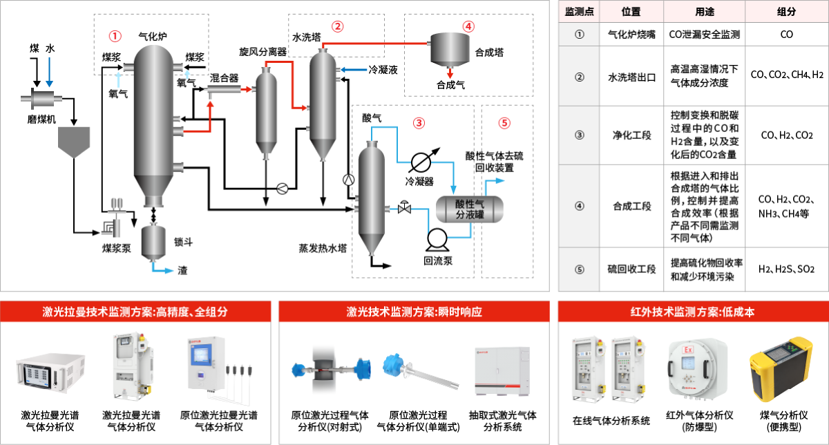 煤气化技术作为新型煤化工的核心与龙头技术,能够将固体煤炭在气化剂的作用下高效转化为清洁的气体燃料——煤气,这一过程是生产烯烃、煤制油等重要化工产品的主要途径。气化炉工艺作为整个煤气化流程的关键环节,其过程气体浓度的精准监测至关重要。通过实时监测气体浓度,不仅可以优化工艺参数,提升生产效率,更能有效保障生产过程的安全性,为新型煤化工产业的稳定发展提供坚实保障。